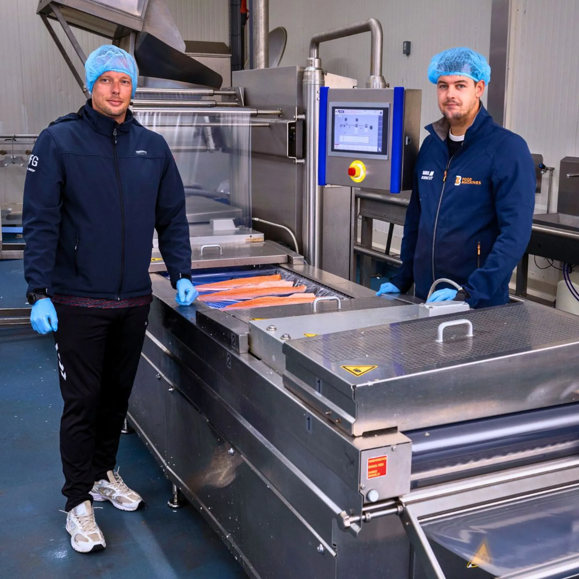Azur Seafood koos twee jaar geleden voor een nieuwe (zalm)fileerlijn. “Die lijn hebben we in samenwerking met een partner hier neergezet en geïnstalleerd”, zegt De Vries. “Als er een fileerlijn wordt neergezet, dan snappen wij als totaalleverancier natuurlijk ook dat ze de verwerkte vis aansluitend moeten gaan verpakken. Op basis van het beoogde volume en de gewenste verpakkingen bieden wij verschillende vacuümmachines en modellen aan om de producten hygiënisch te verpakken. Als je als producent eenmaal op de volumes zit om een volledig geautomatiseerde fileerlijn aan te kunnen schaffen, dan is een verpakkingsmachine een relatief kleine investering voor een visfabrikant.”